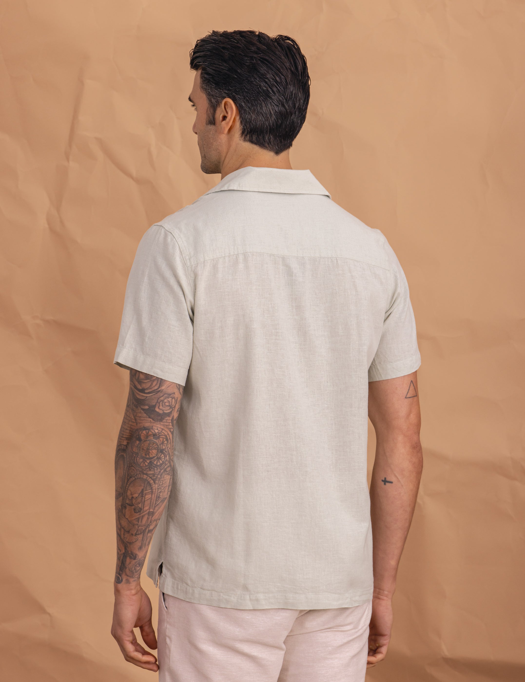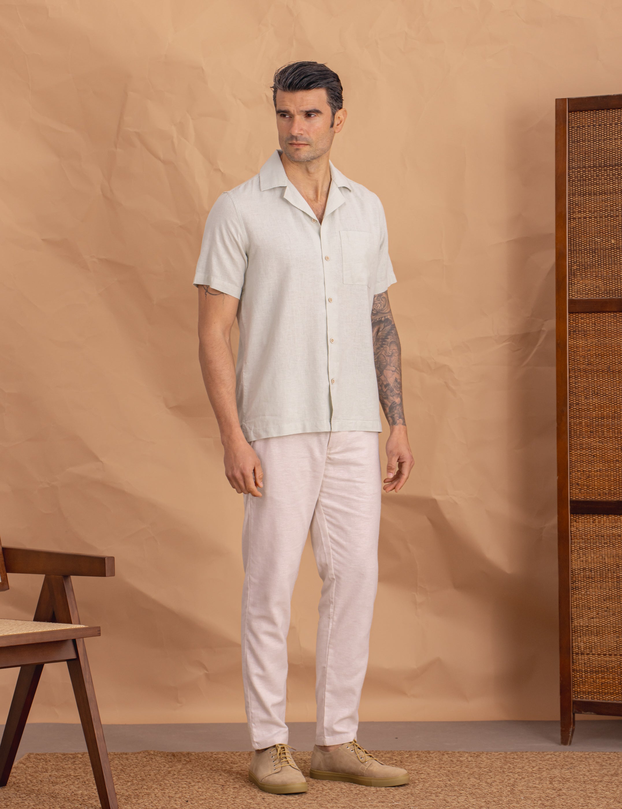 CAMISA CON LINO VERDE MANZANA MANGA CORTA