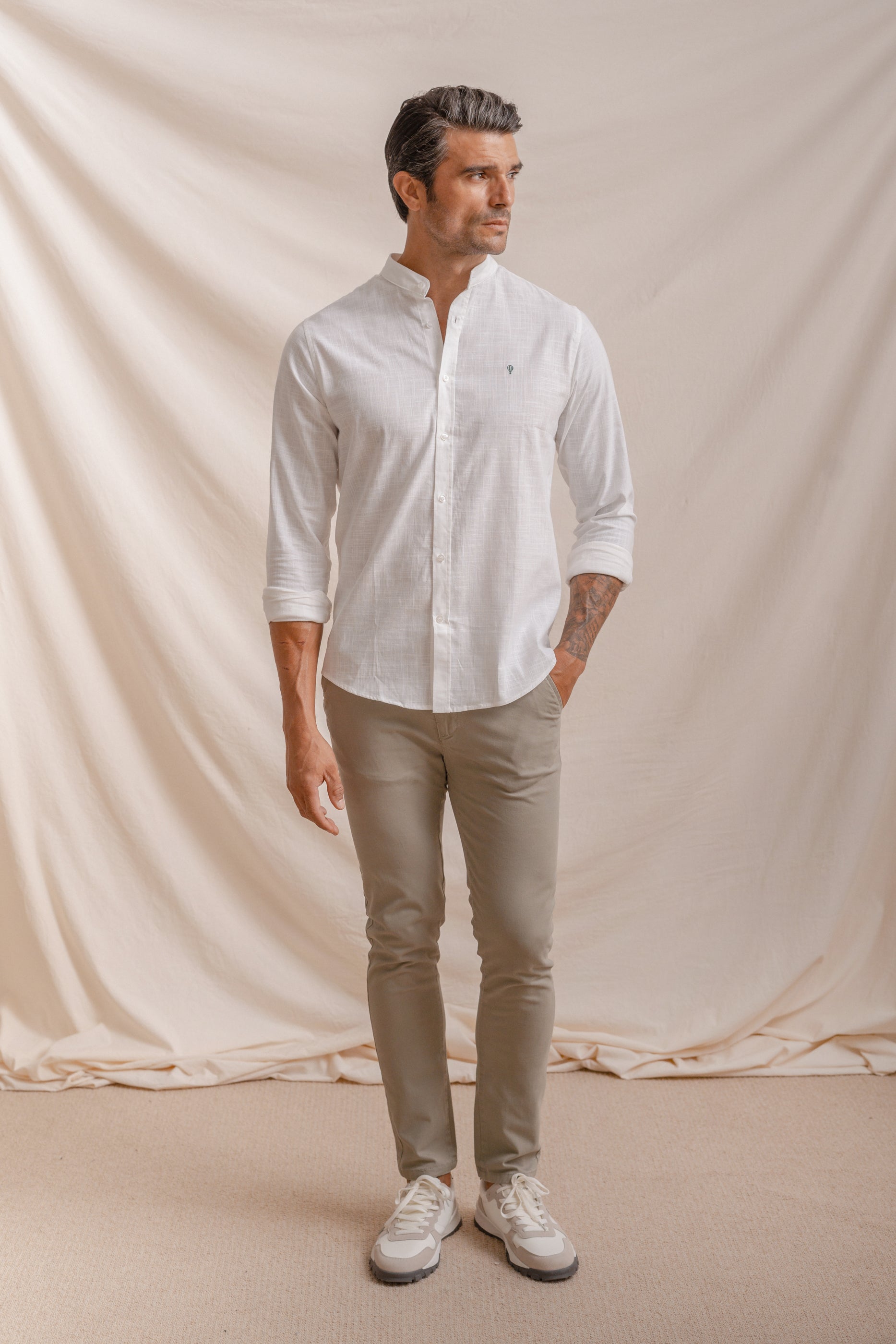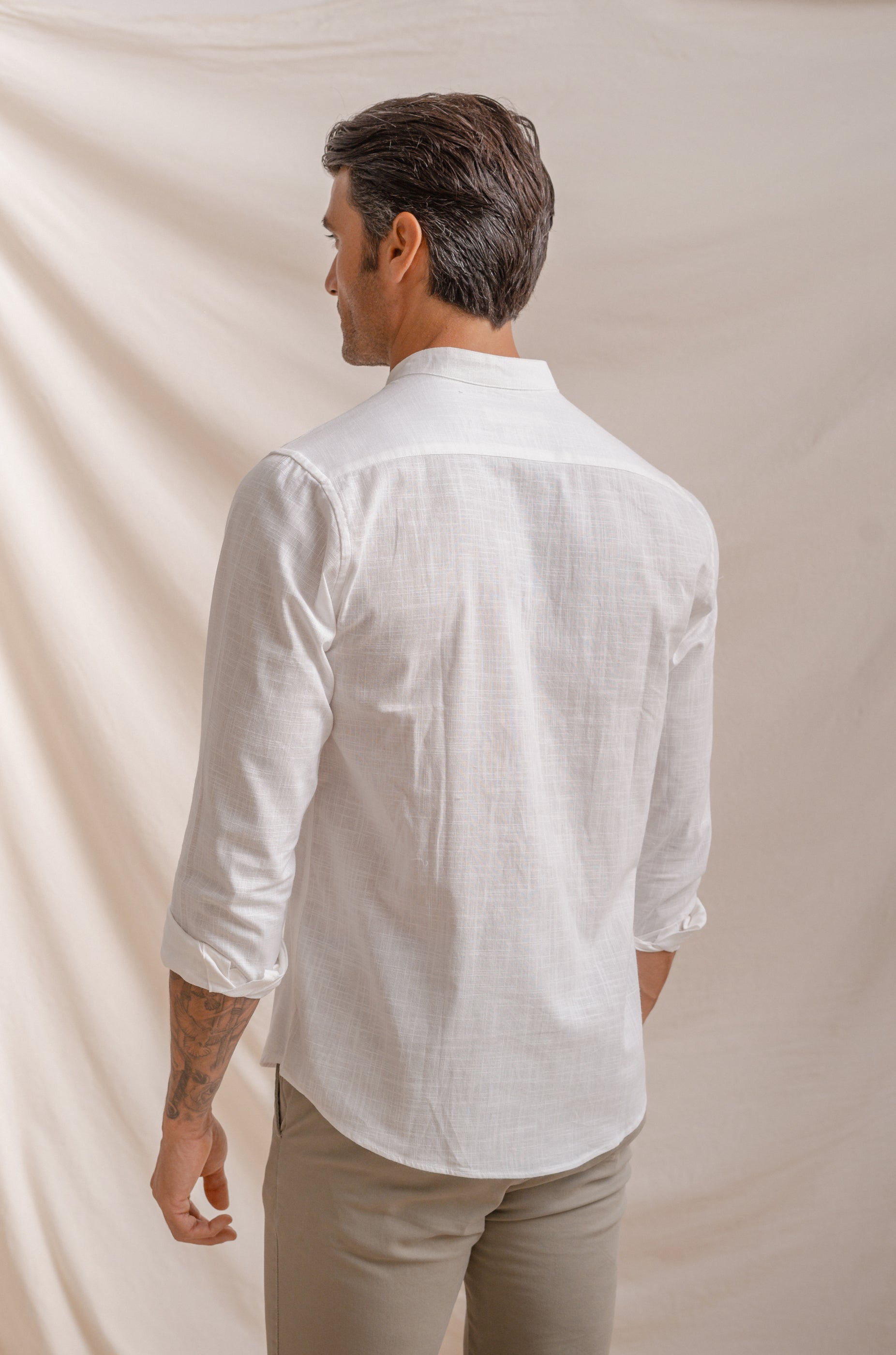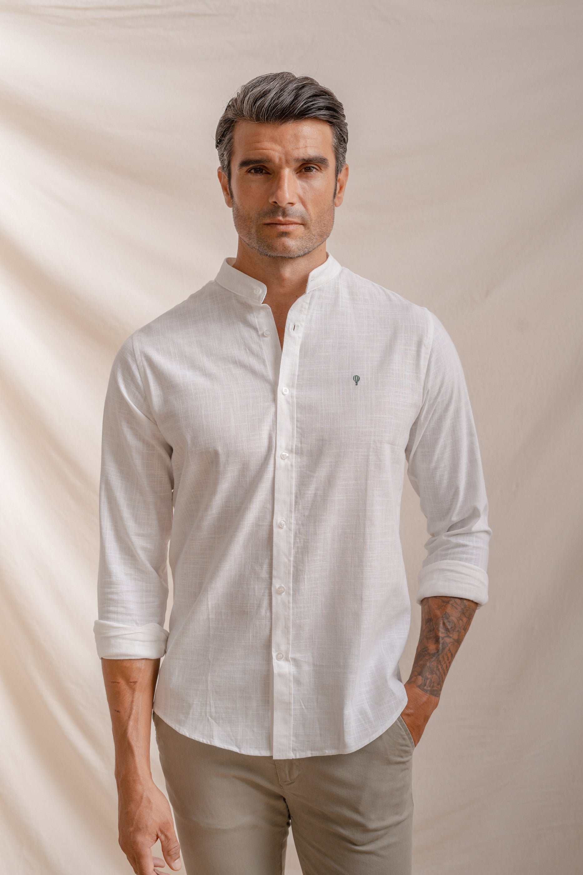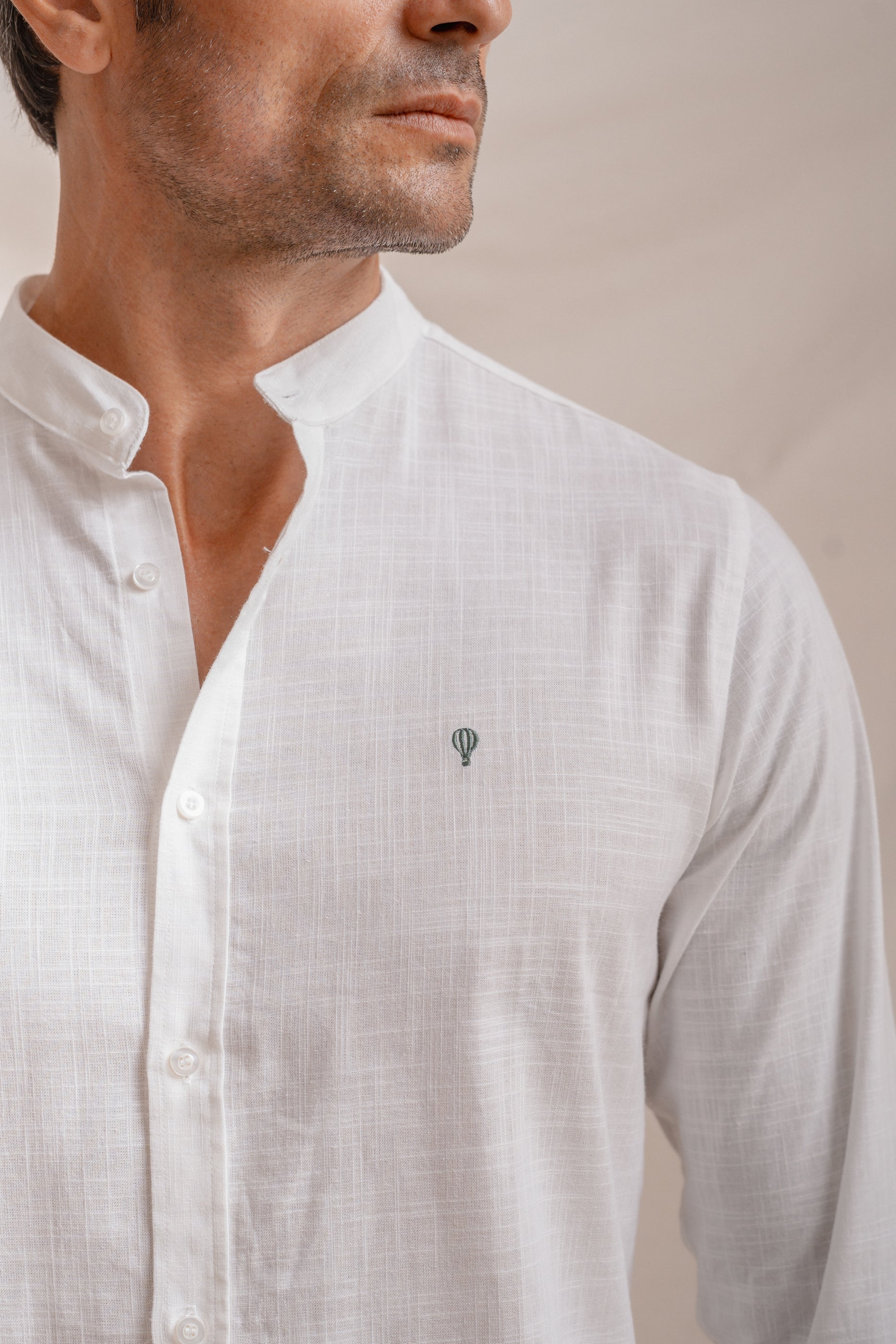 Camisa oxford en color blanca para hombre confeccionada en 100% algodón. Cuello mao, mangas largas y puños simples. Logo al tono en el pecho. Corte regular fit.