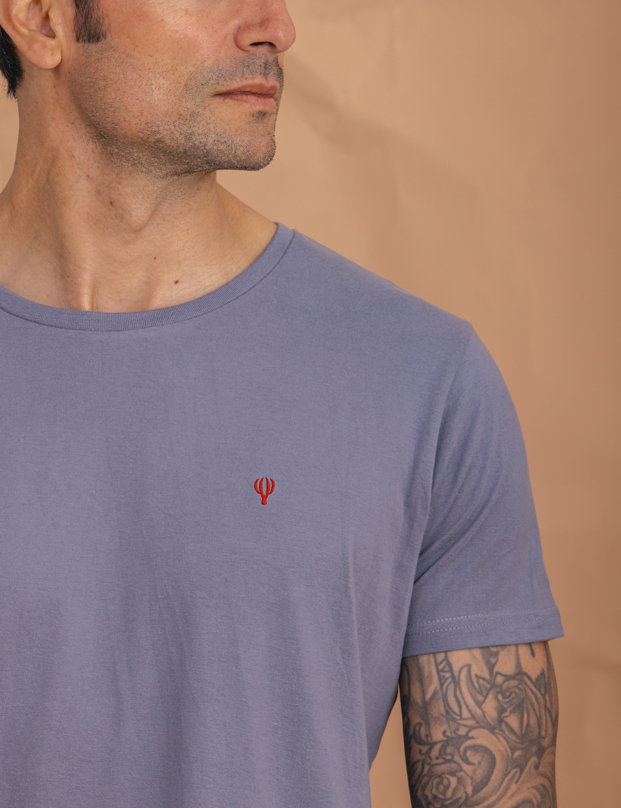 Camiseta lisa en color celeste confeccionada en 100% algodón con cuello redondo, manga corta y logo de la marca a contraste en el frontal. Corte regular fit.