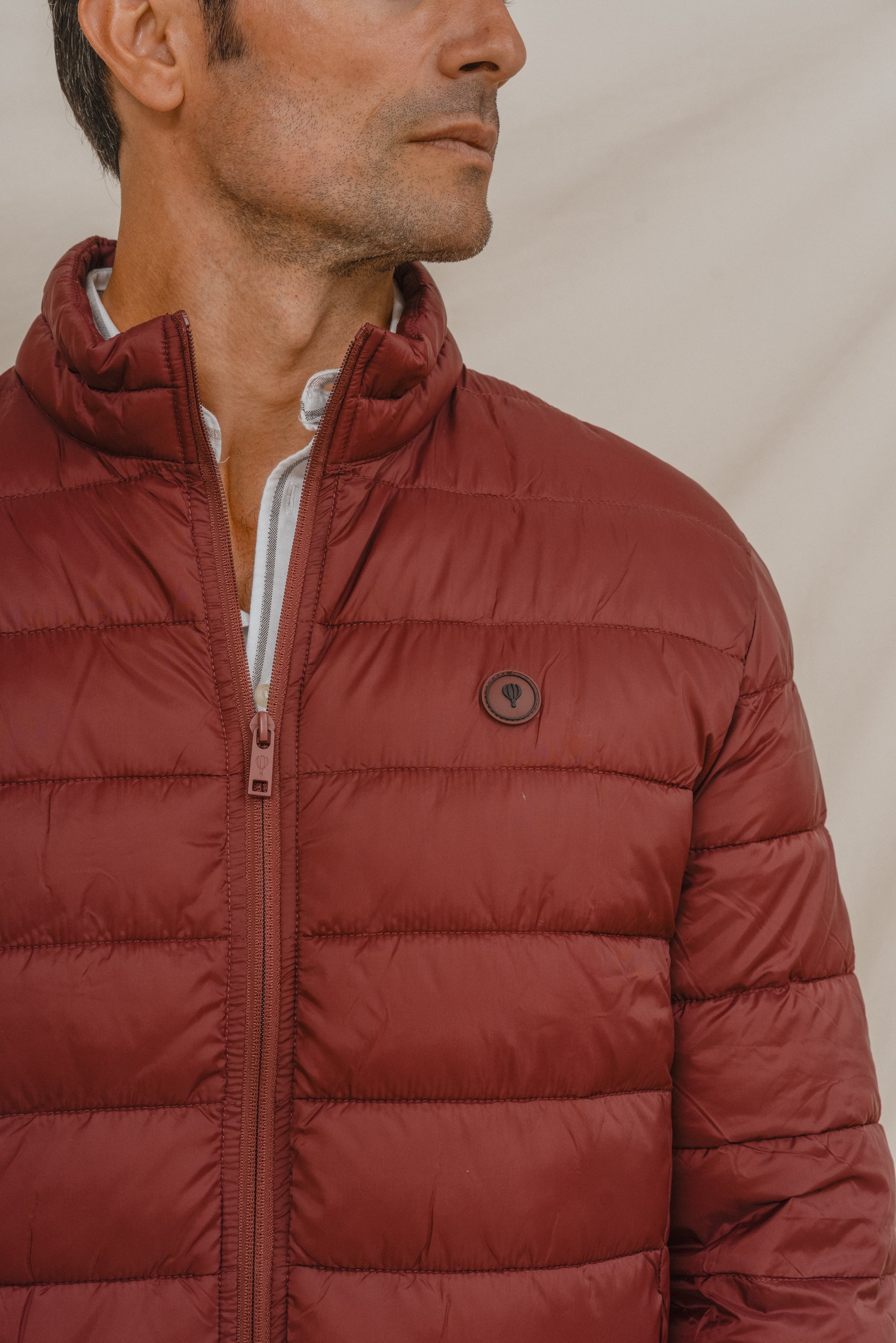 Cazadora acolchada para hombre en color rojo. Cuello chimenea y cierre central mediante cremallera. Dos bolsillos laterales y logo de la marca a la altura del pecho.