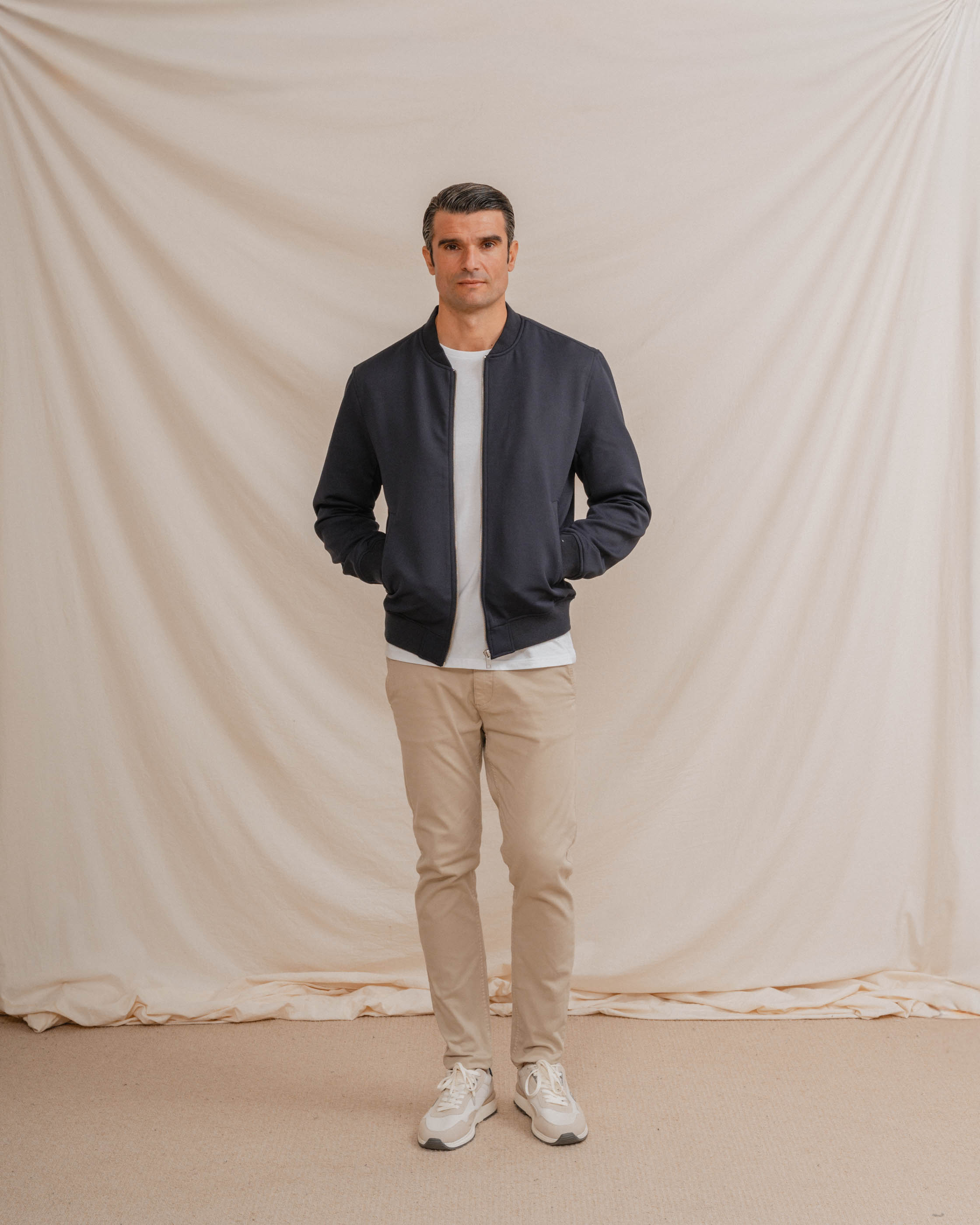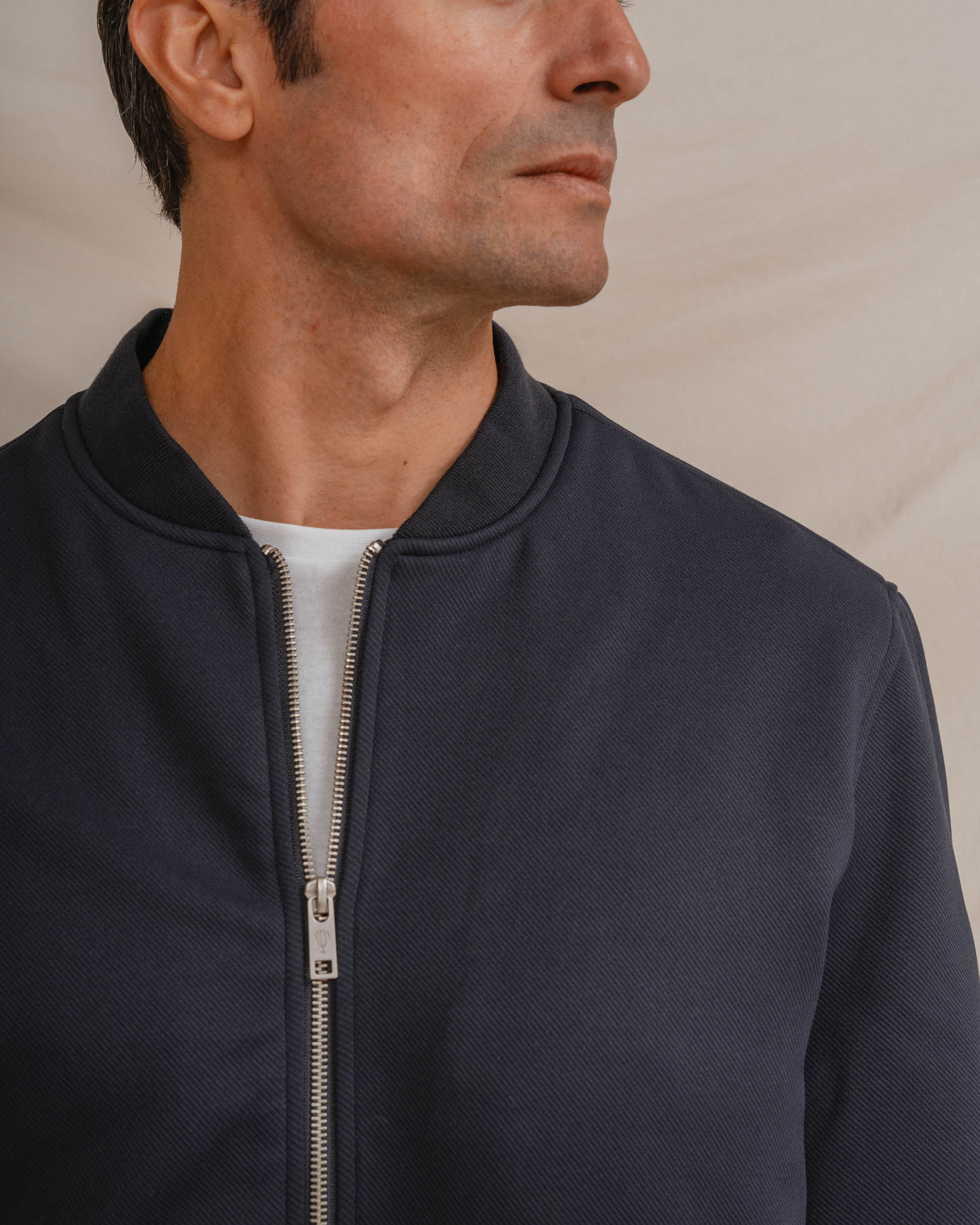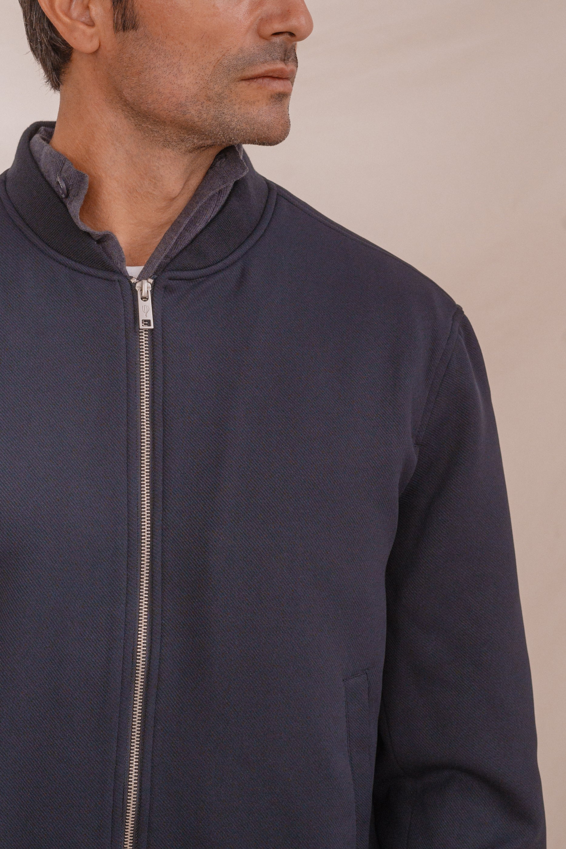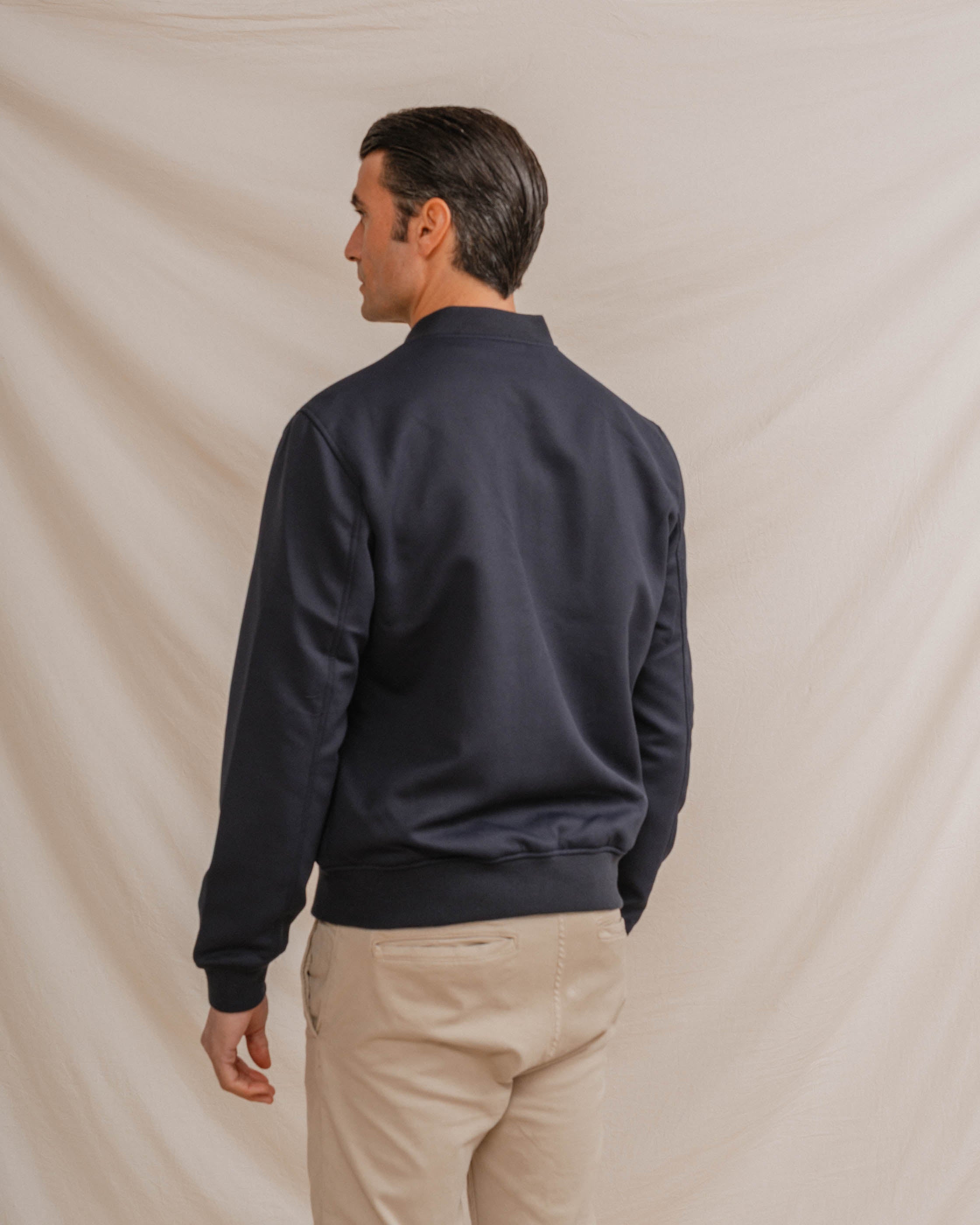 Cazadora para hombre tipo bomber. Cierre central mediante cremallera. Puños y cintura en rib para mayor comodidad. Dos bolsillos laterales. Corte slim.