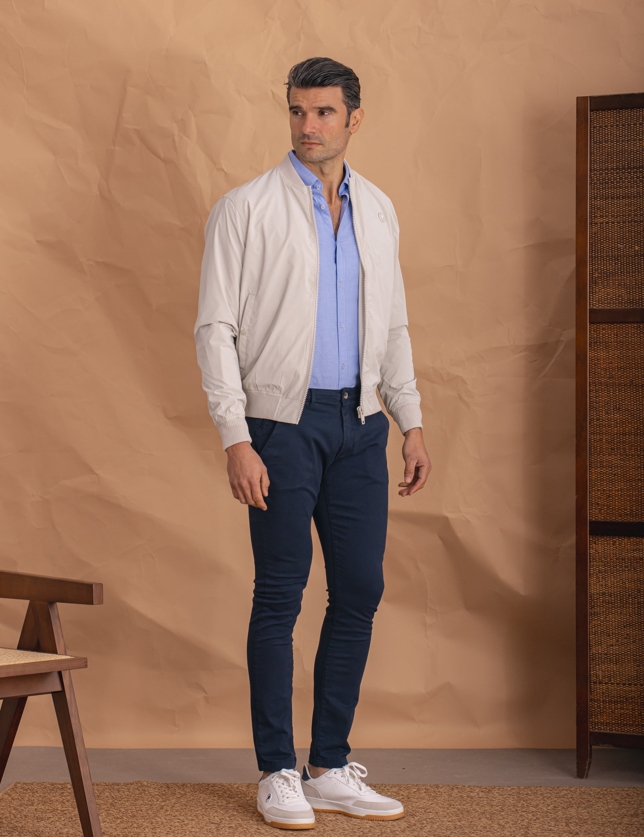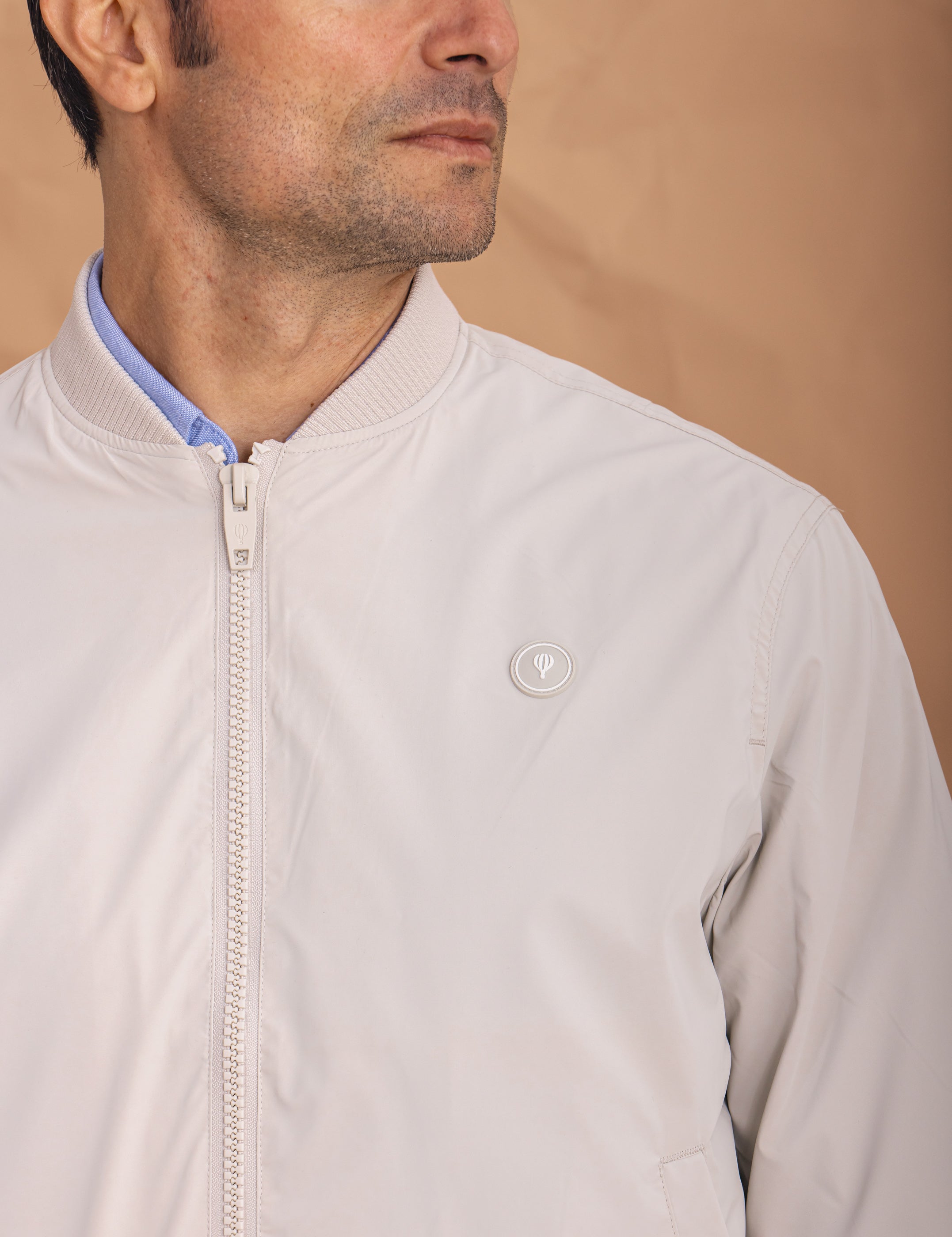 Cazadora para hombre tipo bomber. Cierre central mediante cremallera. Puños y cintura en tib para mayor comodidad. Dos bolsillos laterales. Logo de la marca en el frontal a la altura del pecho.