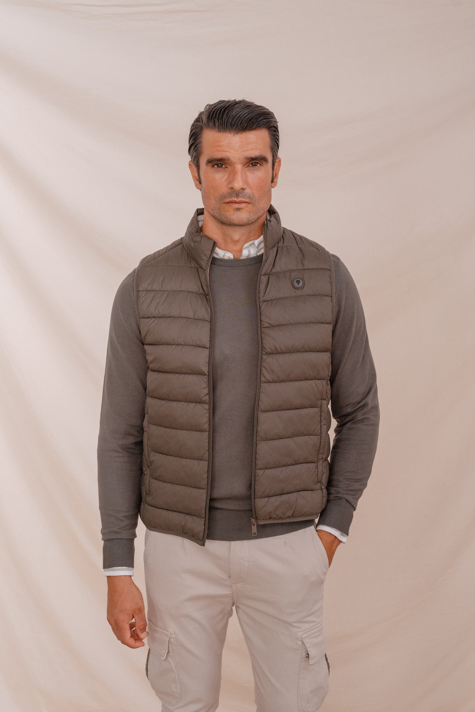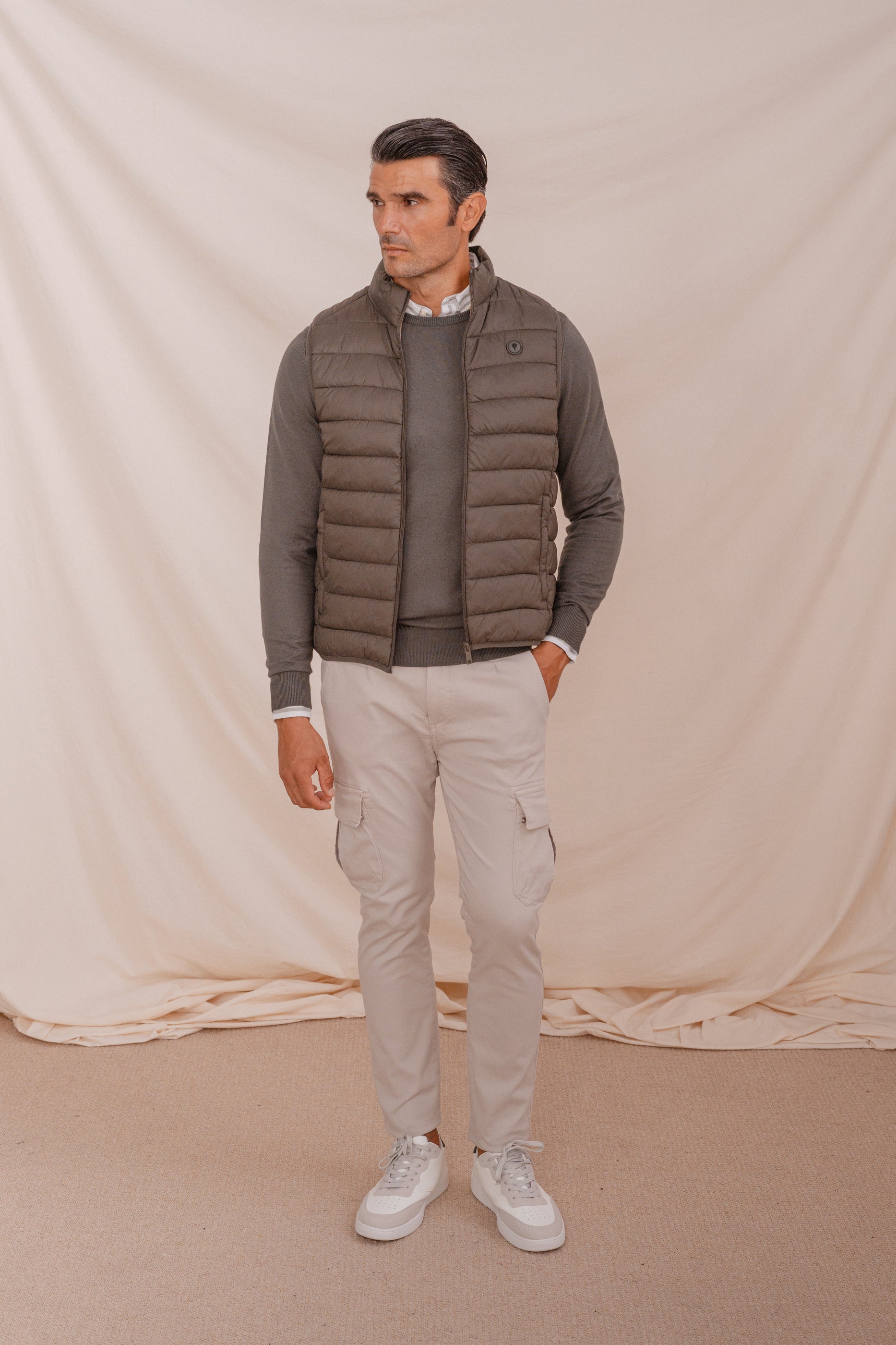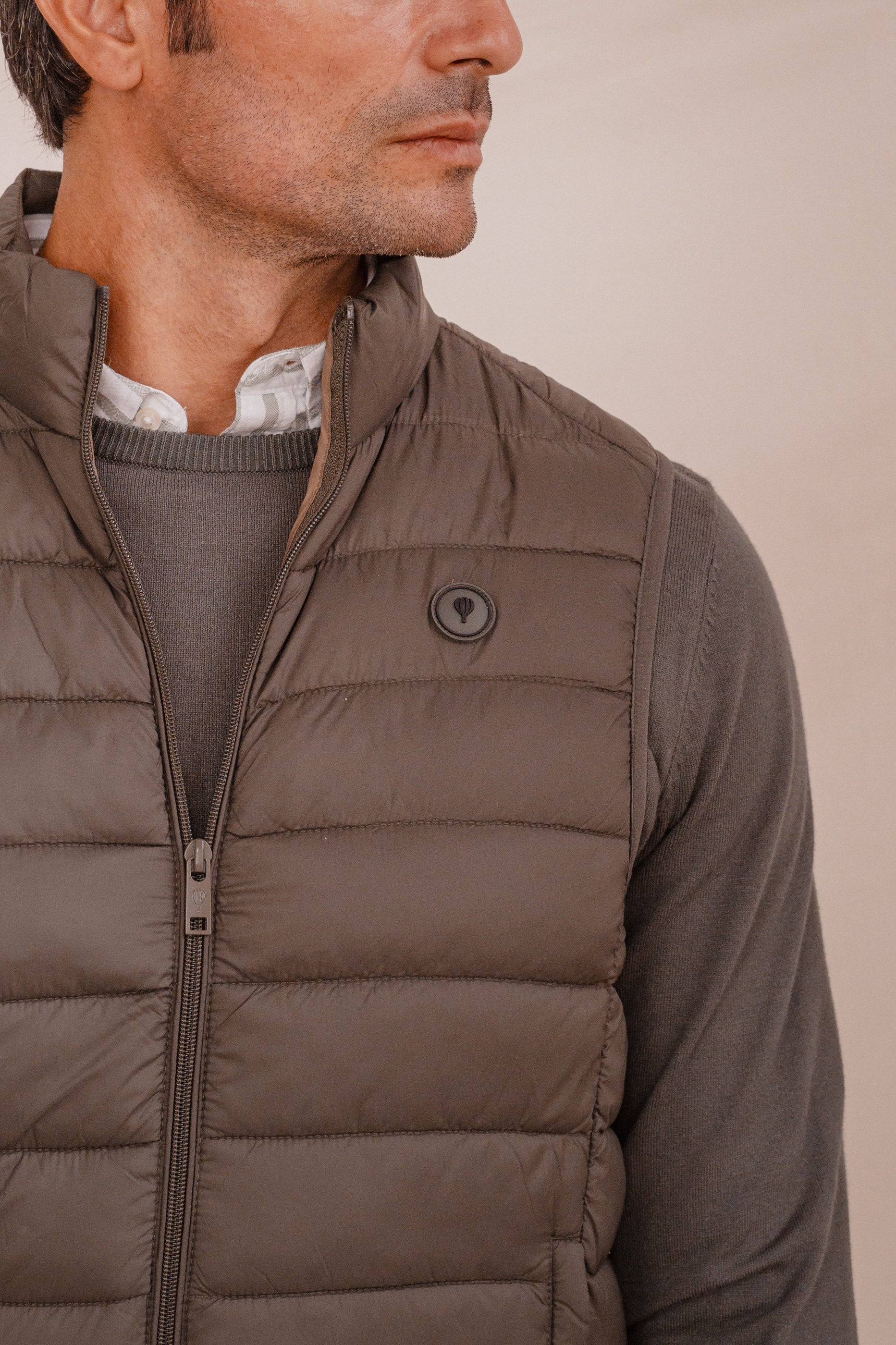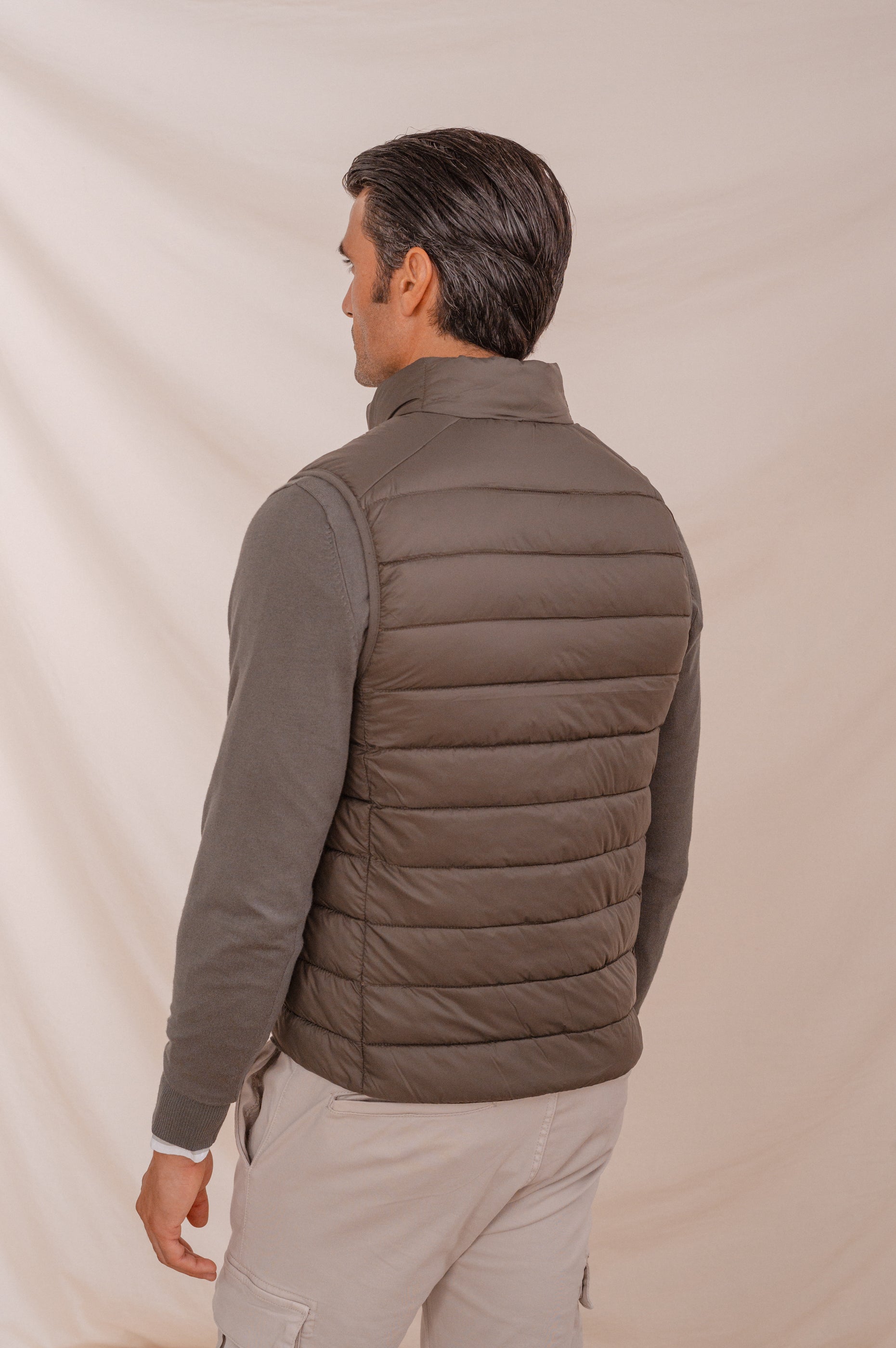 Chaleco acolchado en verde con cuello subido y cierre central mediante cremallera, dos bolsillos a la altura de la cintura y logo de la marca en el frontal. Corte regular fit.