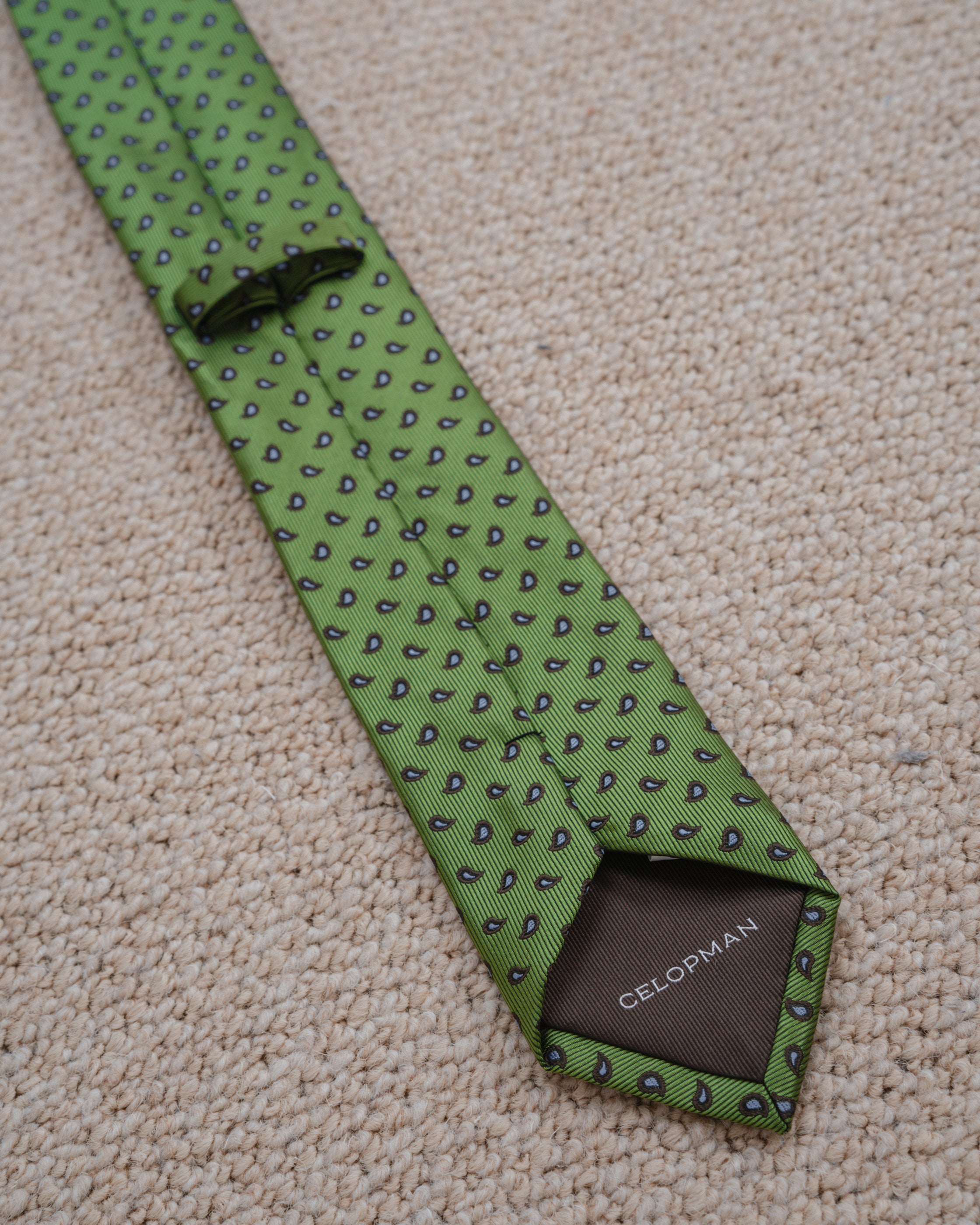 Corbata en color verde con diseño cachemir a contraste.