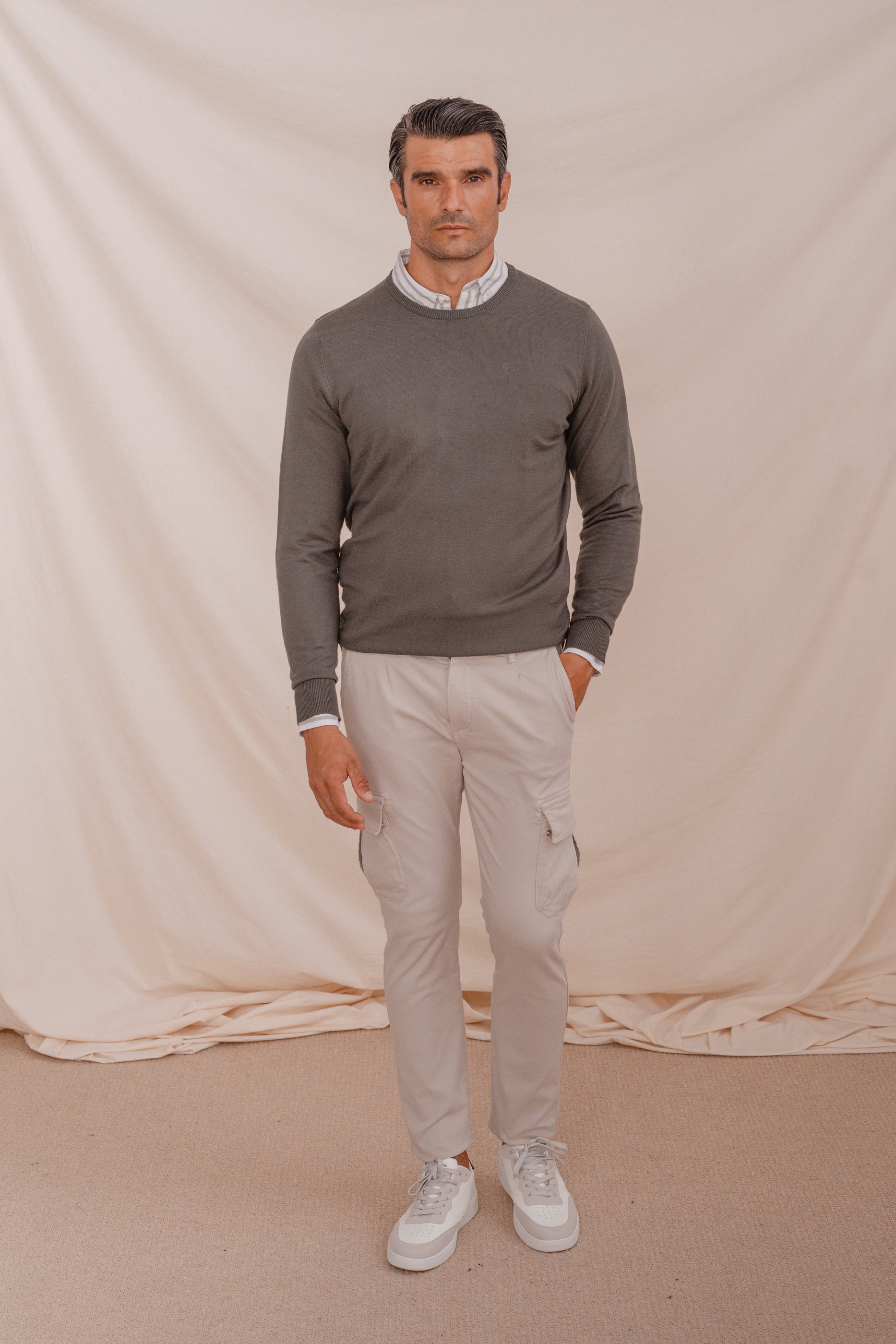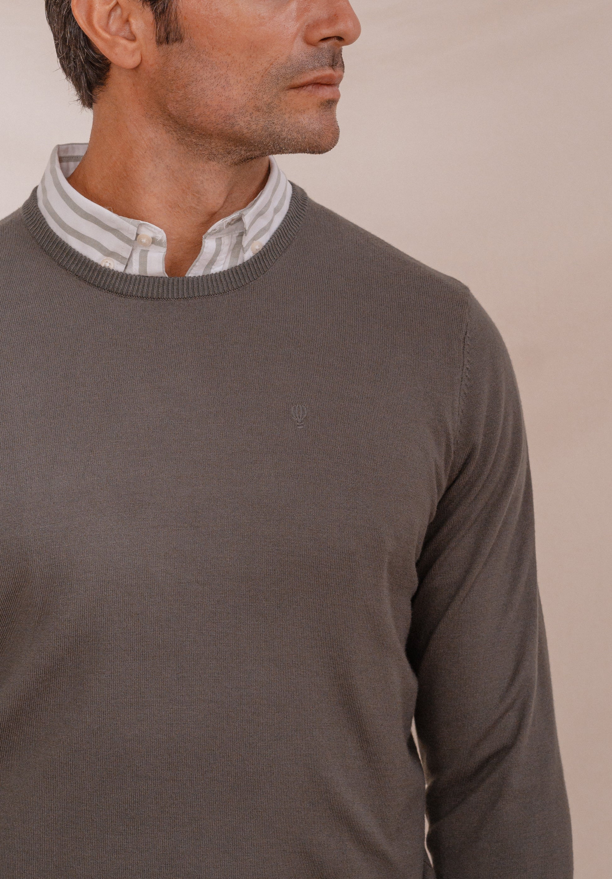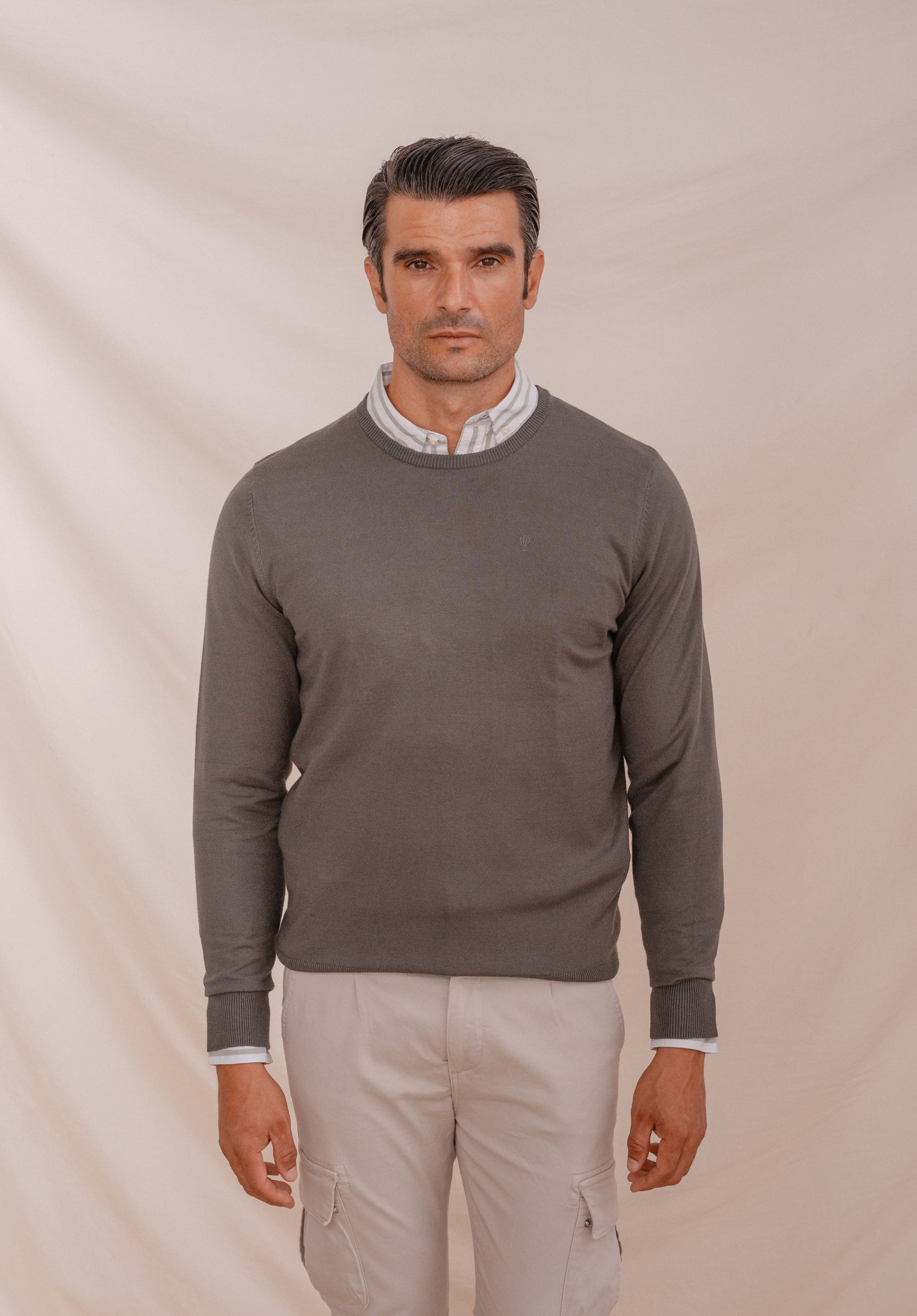 Jersey de punto fino básico con cuello a la caja. Bajo, puños y cuello en ribs de punto elástico para mayor comodidad. Logo bordado al tono a la altura del pecho.