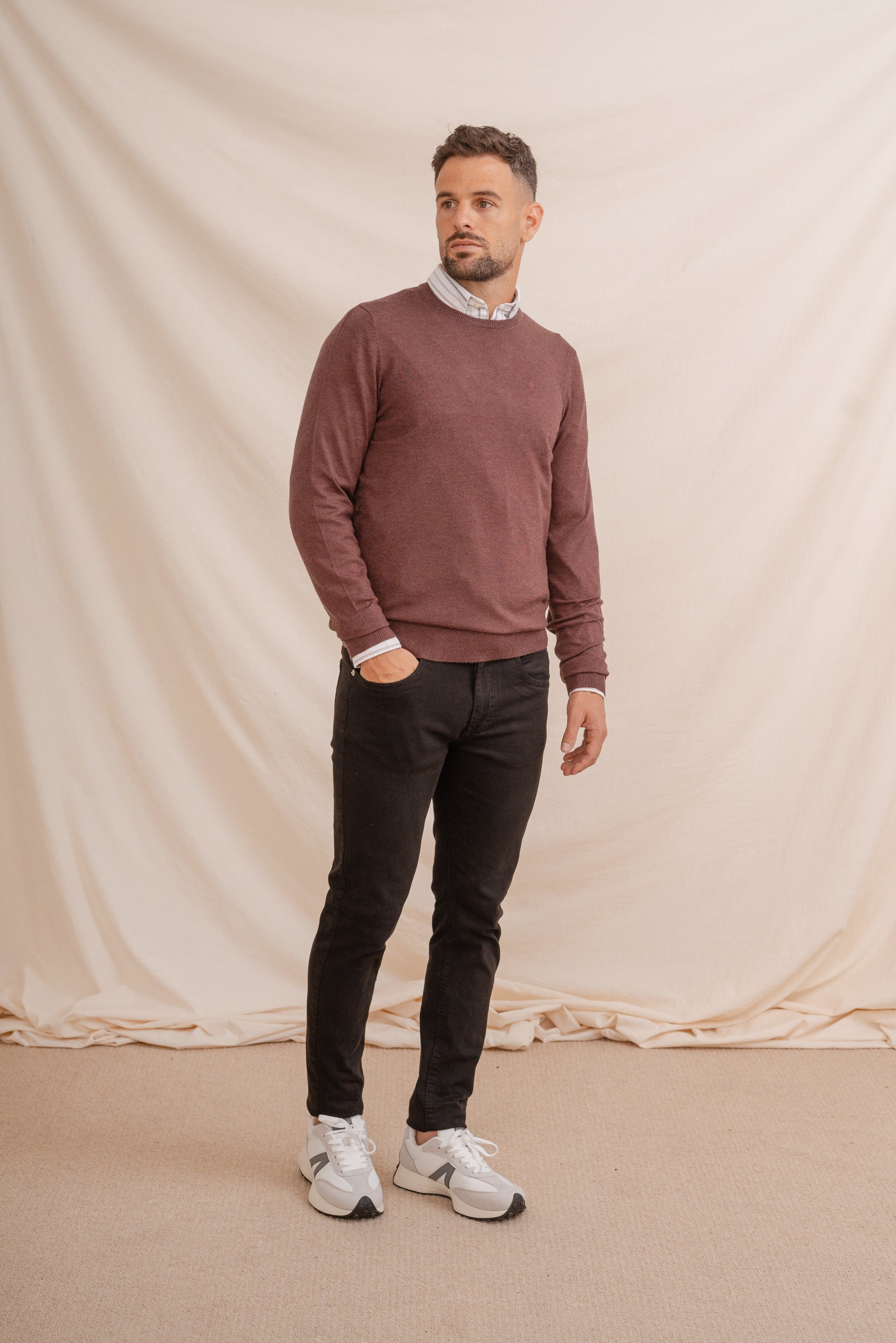 Jersey de punto fino básico con cuello a la caja. Bajo, puños y cuello en ribs de punto elástico para mayor comodidad. Logo bordado al tono a la altura del pecho.
