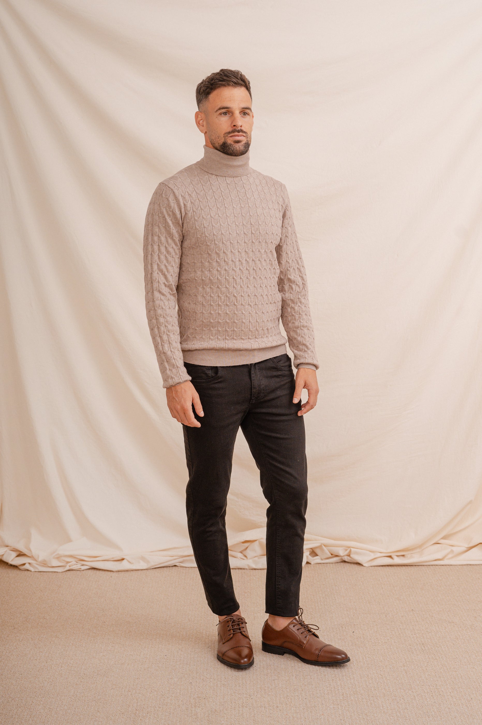 JERSEY CUELLO CISNE NUDOS BEIGE