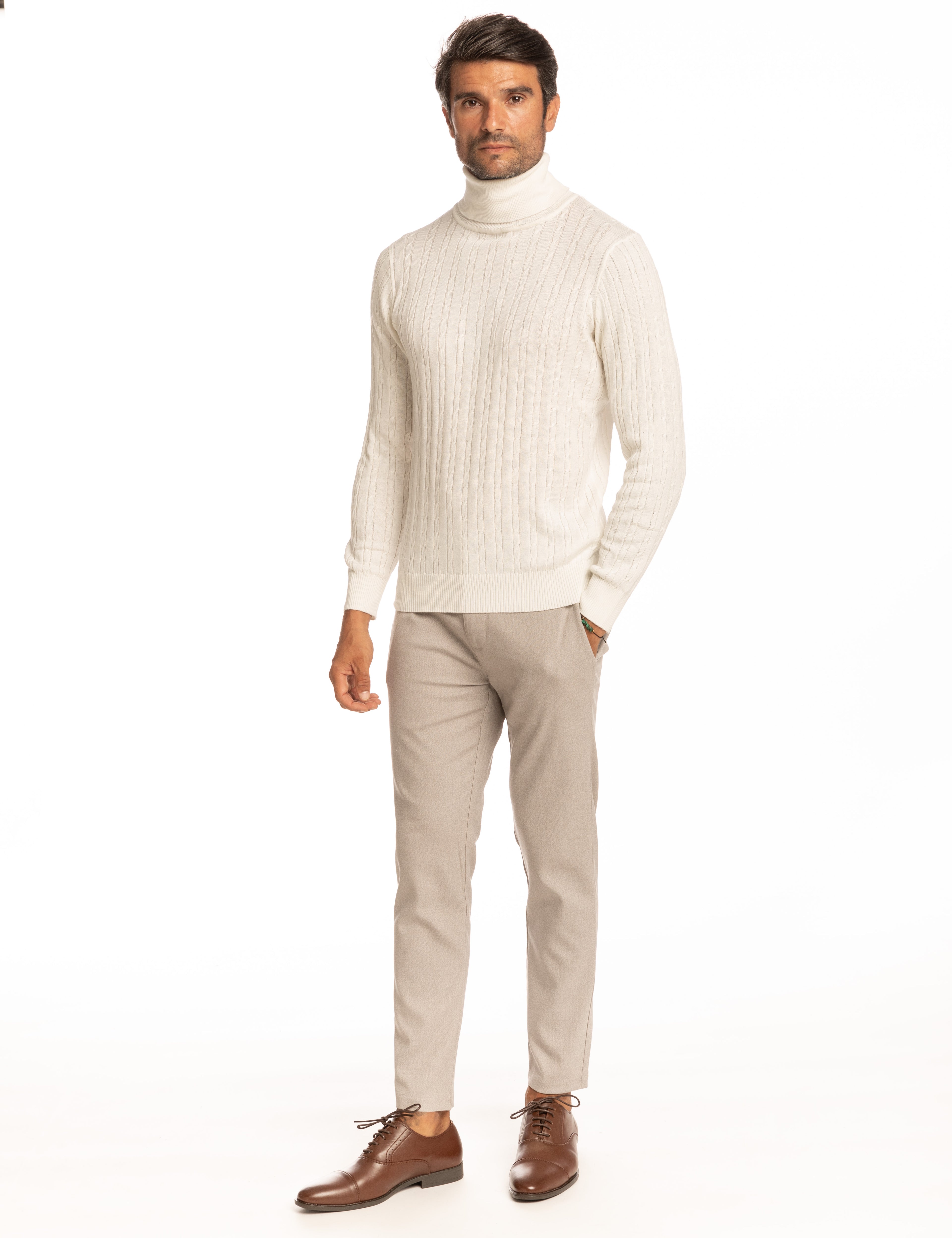 Jersey regular fit de punto con estructura de nudos. Cuello cisne. Manga larga y acabados en rib.