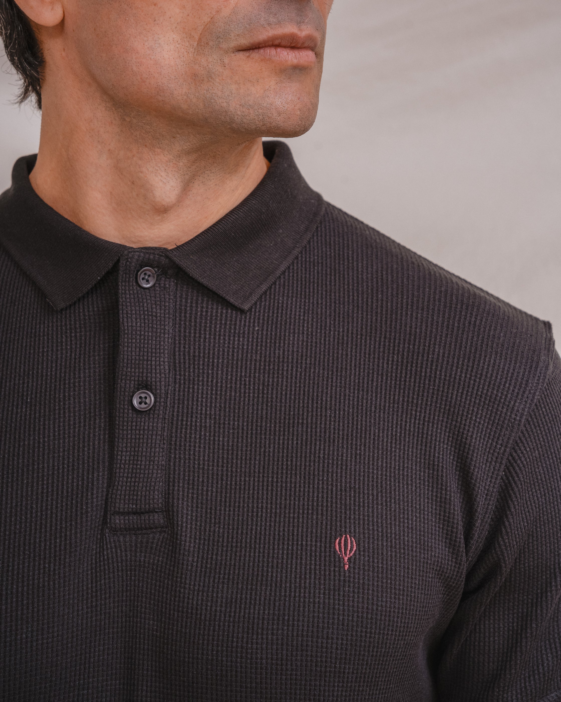 Polo con estructura en color negro para hombre confeccionado en 100% algodón. Cuello con botones y manga corta. Corte regular fit. Logo a contraste en el frontal a la altura del pecho.