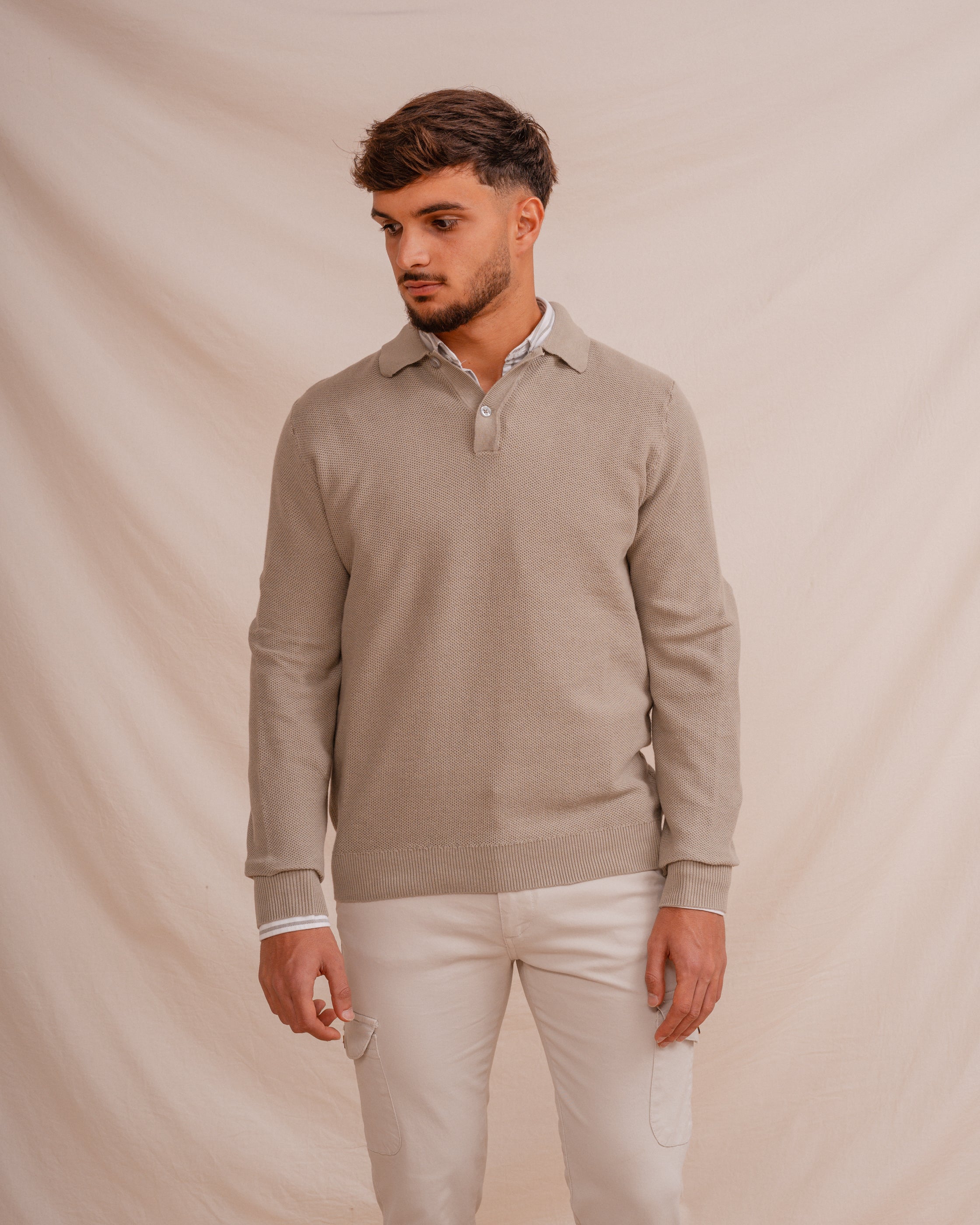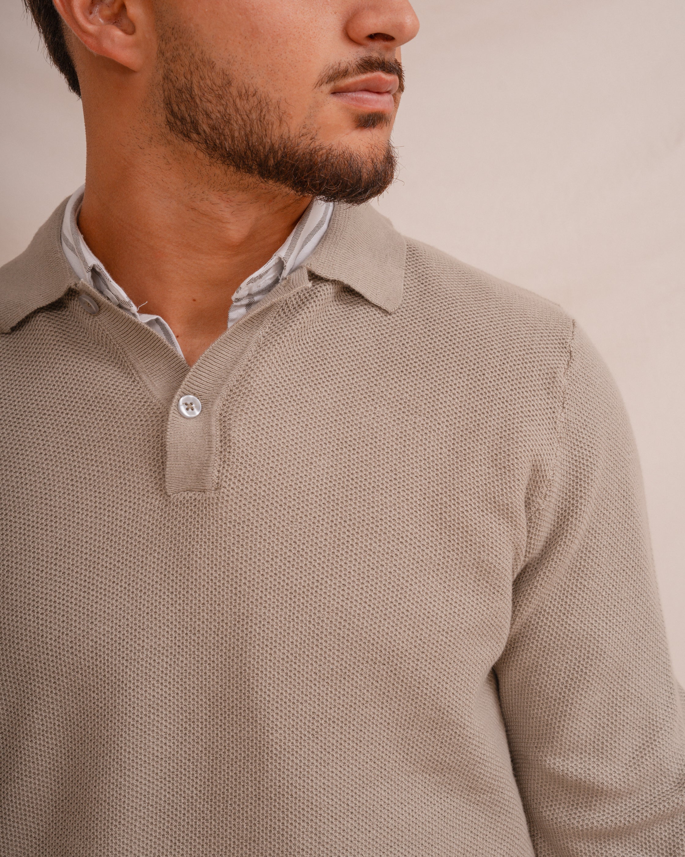 Polo de punto regular fit confeccionado en 65% poliester y 35% algodón con estructura en nido de abeja en color verde. Manga larga. Acabados en rib.