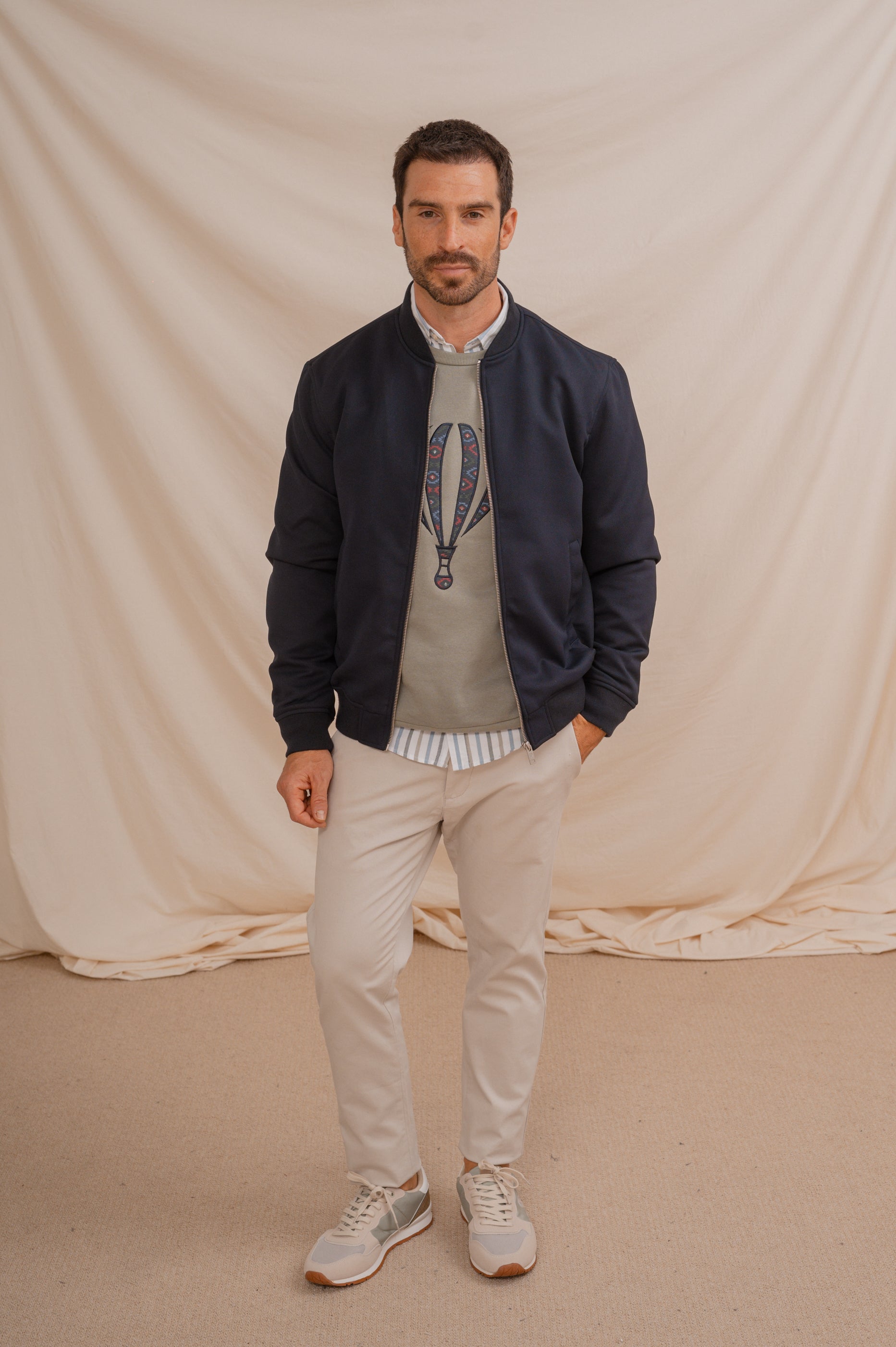 Sudadera verde manzana para hombre confeccionada en 55% algodón y 45% poliéster con corte regular fit. Cuenta con cuello redondo a la caja, cinturilla elástica y manga larga. Presenta logo bordado en el frontal con tejido étnico.